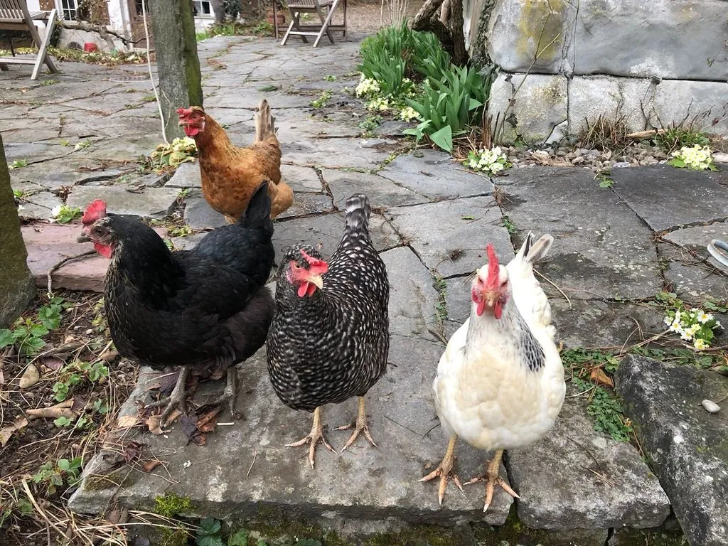 Und dann die Prognose: frühlingshaft mild. In meinem Garten diskutierten wir stundenlang über unsere Projekte. Als der Sitzplatz im Schatten lag, sind wir auf die Wiese umgezogen und haben die Hühner rausgelassen. Sie dürfen nur raus, wenn jemand aufpasst, sonst drohen Autos und Füchse. Im Gehege ist die Erde kahl, die Hühner pflücken jeden kleinsten Sämling. Draussen geniessen sie es, in der Erde zu graben, unter dem Stroh nach Insekten zu suchen oder einfach frisches Grün zu schnabulieren.